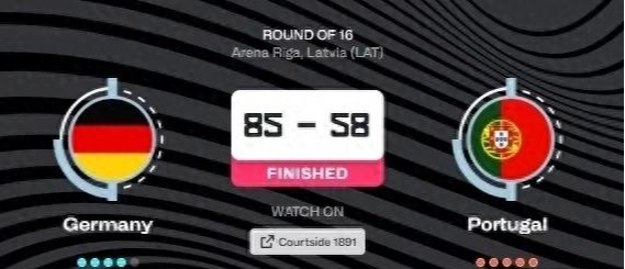 北京时间9月6日晚间,2025年男篮欧洲杯第二场1/8淘汰赛,世界杯冠军德国男篮对阵葡萄牙男篮。最终经过四节激战,德国男篮以85-58大胜葡萄牙男篮,豪取6连胜的同时晋级八强,1/4决赛将对阵斯洛文尼亚男篮与意大利男篮之间的胜者。