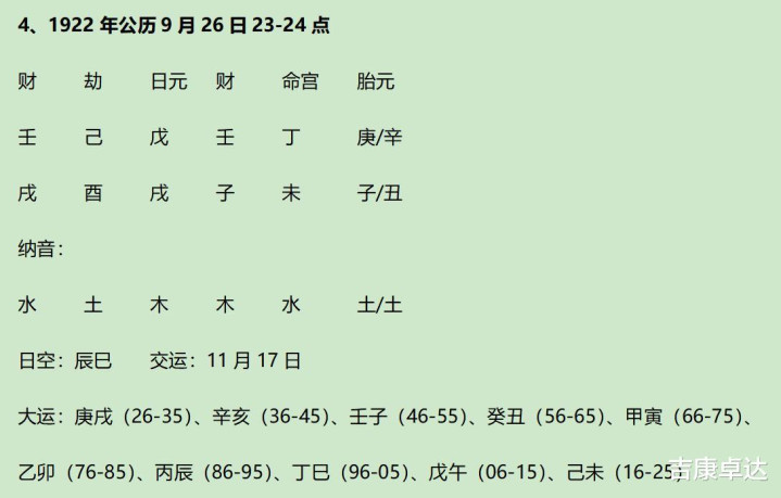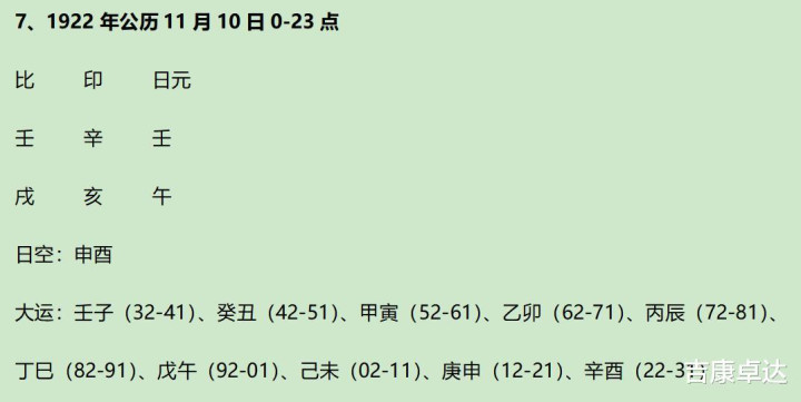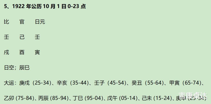 1922年公历11月10日这个时间,这个时间我们单独看前3柱是没问题的。因此,我们接下来分析此日的0-23点时辰。
