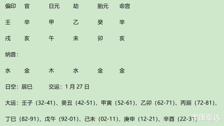 综合而为,偏印制伤,比生食,食神驾杀(辛官地支得酉申子丑戌,3纳音金,过强而似杀),杀旺,偏印旺、伤旺之年。