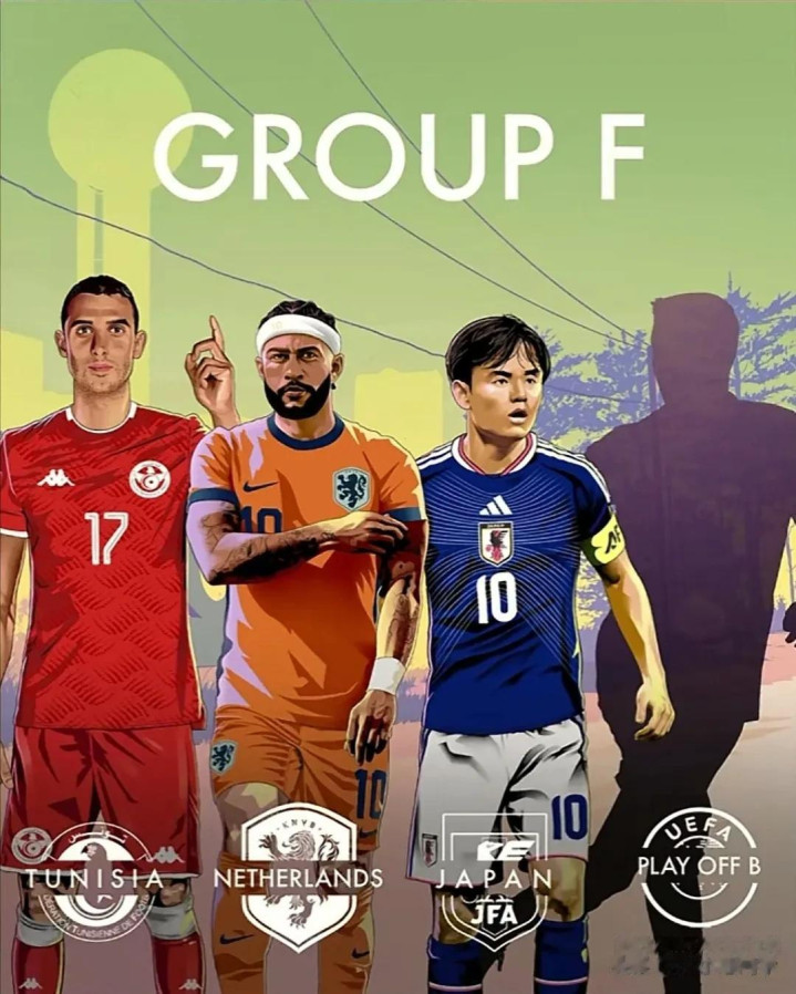 F组是荷兰、日本、突尼斯以及欧洲附加赛B组的晋级球队,包含着乌克兰对阵瑞典和波兰对阵罗马尼亚这两场比赛的胜者。