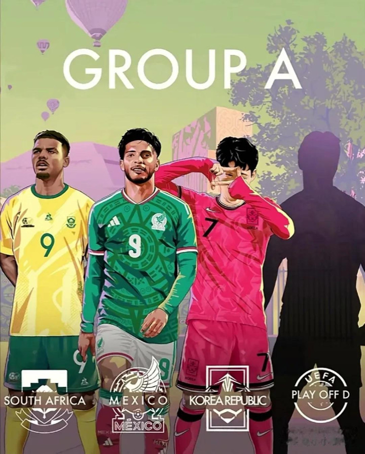 我来给大家整体的过一遍每个小组的情况,A组的四支球队是墨西哥、韩国、南非以及欧洲附加赛D组晋级球队也就是捷克、爱尔兰和丹麦,马其顿这四支球队的胜者。
