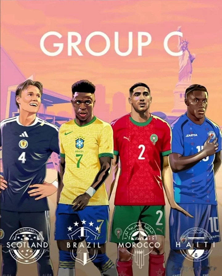 C组的四支球队将会是巴西、摩洛哥、苏格兰和海地,巴西队在这个小组还是有一定的优势。