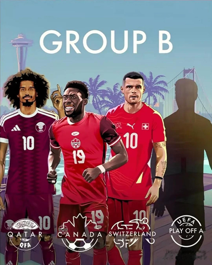 B组的四支球队是加拿大、瑞士、卡塔尔以及欧洲附加赛A组的晋级球队,A组是由意大利以及威尔士,意大利队如果晋级世界杯的话,将会分在这个小组。