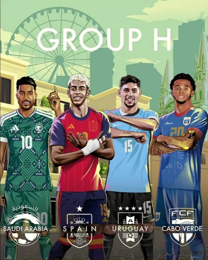 H组是西班牙、乌拉圭、沙特以及佛得角。