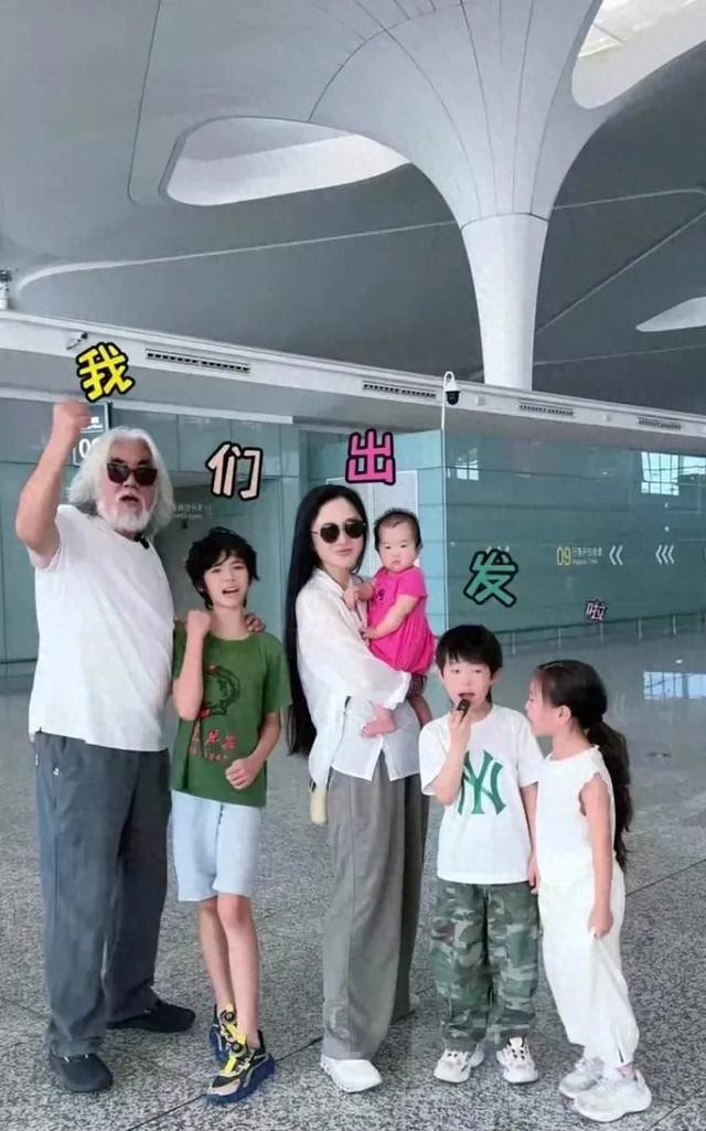 一家六口整整齐齐,有老有小,张纪中已经74岁高龄,最小的女儿小龙珠才8个多月。既要游玩,又要录制视频,着实不容易。