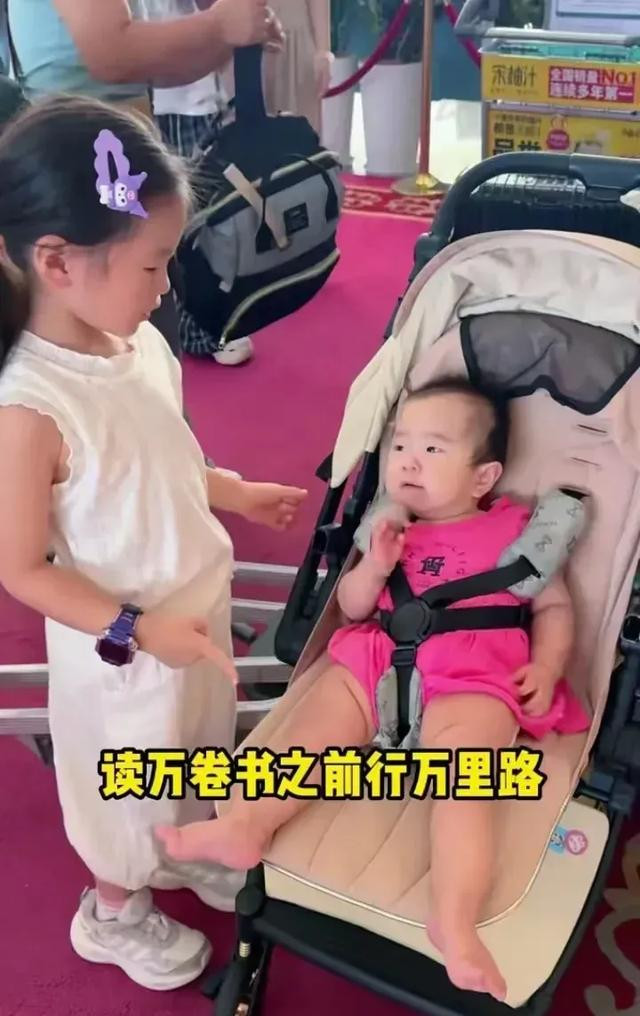 姐姐花花时不时逗妹妹玩小龙珠,非常有爱。小龙珠长得像极了父亲,非常乖巧,不哭不闹。